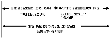 ですから、中医学の治療方針としては、赤みやジュクジュク感などの症状を抑えることも大切ですが、それより、急性湿疹症状が落ち着いたあとの、肌質を改善する治療段階をより重視しています。