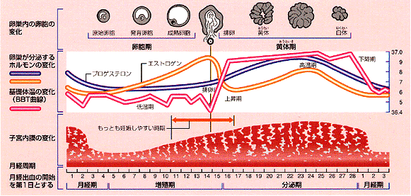 低温相は月経が始まってから排卵が起こるまでの時期です。この時期は主に卵胞ホルモン(エストロゲン)が分泌されています。